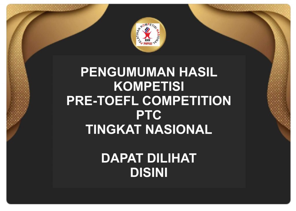 Pengumuman Hasil Kompetisi Pre – Toefl Competition PTC, Yang Diselenggarakan Oleh National Competition Training Foundation POPNAS Pada Tanggal 3 April 2022.